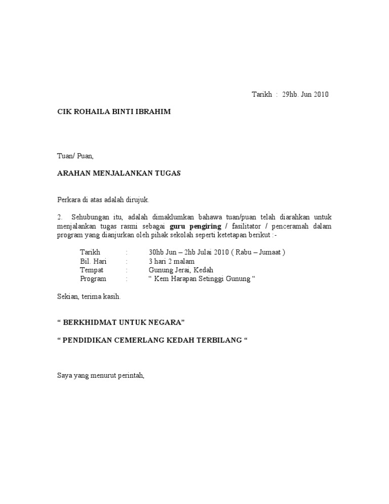 Contoh Surat Arahan Bertugas Letter 7saudara Com